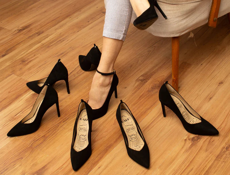 Was ist das Geheimnis hinter Maison Baum's High Heel? Es ist die bessere Gewichtsverteilung! Die stützenden Elemente im integrierten Fußbett verhindern, dass der Fuß im Schuh nach vorne rutscht. Die Belastung auf den Vorfuß wird um bis zu 50 % reduziert. Ihr Lächeln um 50% erhöht.